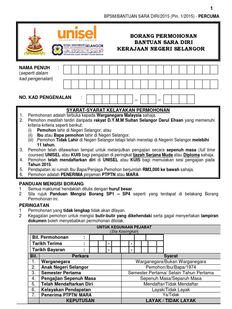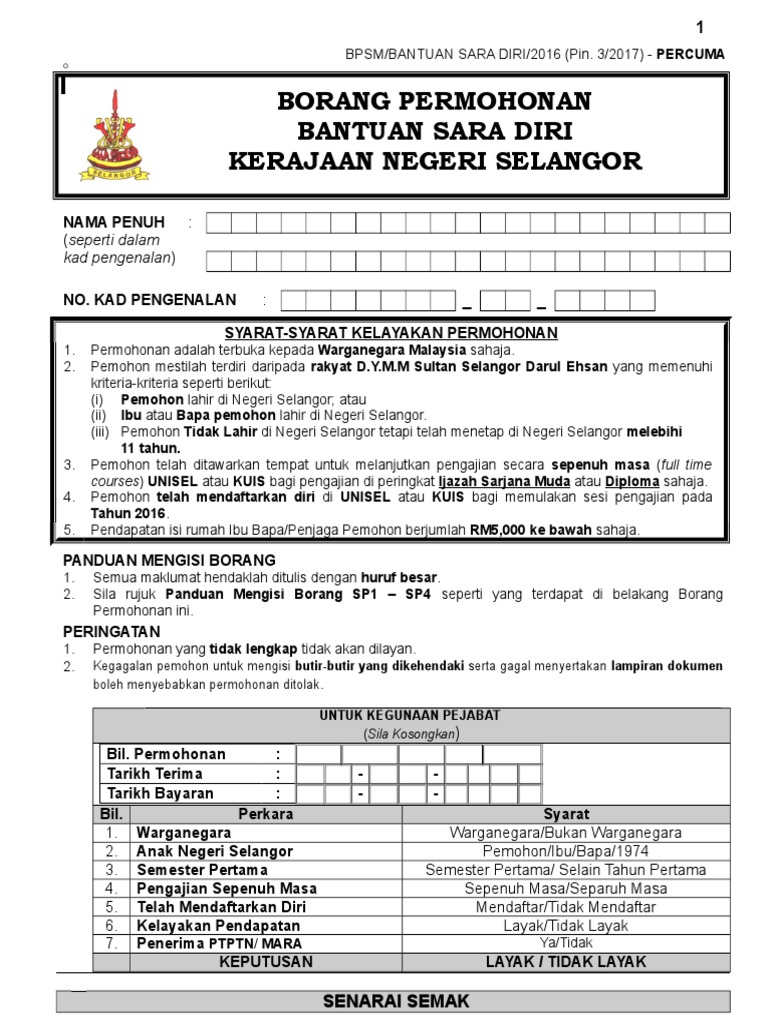 Borang Permohonan Bantuan Sara Diri Pdf