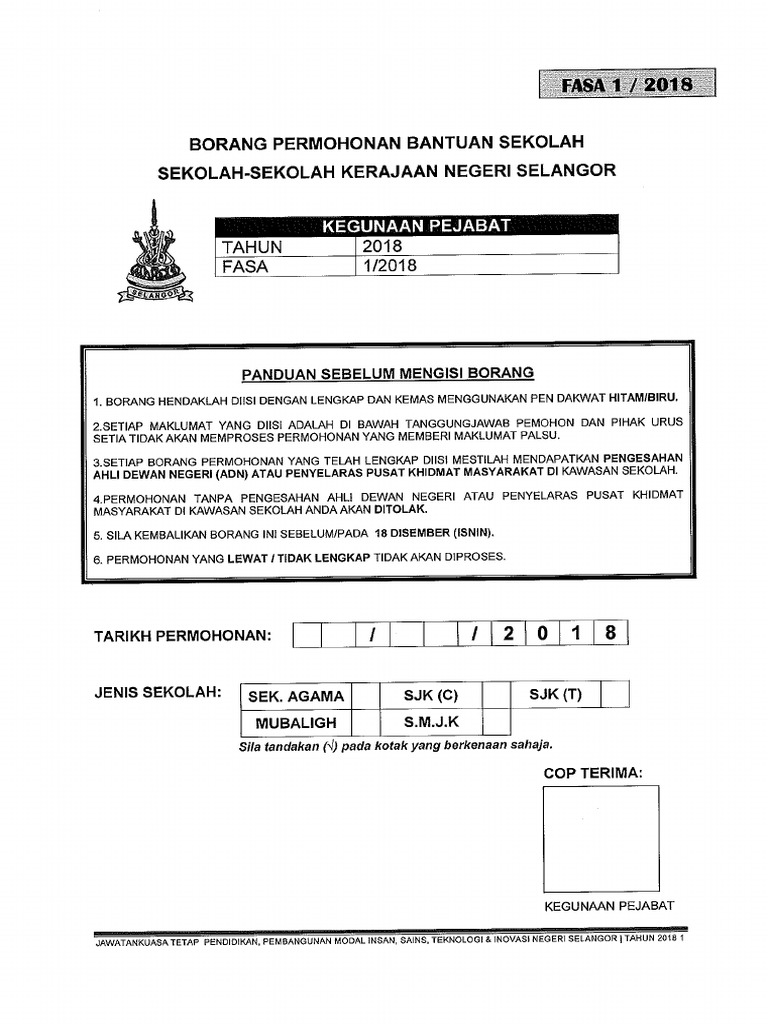 Borang Permohonan Bantuan Sekolah Kerajaan Pdf